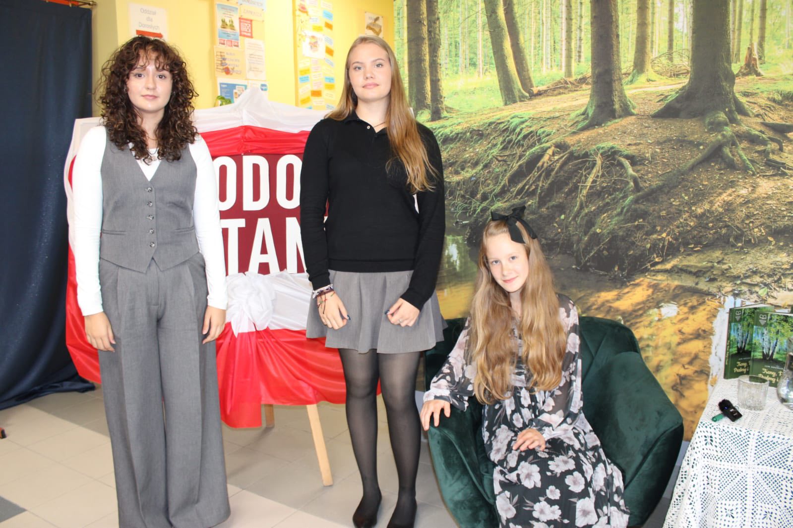 Dziewczyny zaprezentowały fragmenty Trenów Jana Kochanowskiego, wprowadzając słuchaczy w refleksyjny i wzruszający świat poety. Wspólnie z nimi czytała także Pani Dyrektor Mariola Czarnecka, która wybrała do prezentacji jedną z Fraszek, ukazującą lekkość i humor poety.